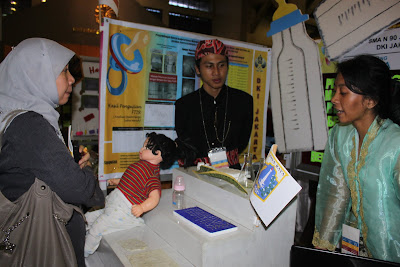 Kemudian pada tim kimia yang mengangkat judul “Pengembangan Material Komposit Bebas Monomer Stirena Berbahan Dasar Styrofoam Cair, Minyak Atsiri, dan Anyaman Serat Sansivieria Berpola Tikar Sebagai Bagan Dasar Pembuatan Botol Susu Bayi” menjadikan botol susu bayi yang ditata sedemikian rupa sehingga bisa dilihat dari jauh dan boneka susan yang diletakkan di depan stan sebagai icon mereka. Hal ini terbukti jitu, karena banyak pengunjung yang datang ke stan mereka tertarik dengan botol susu dan boneka susan tersebut.